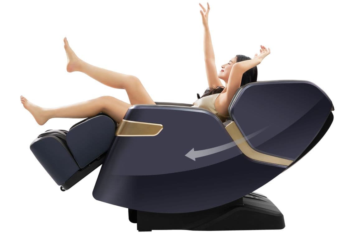 La poltrona è stata progettata anche quando lo spazio è ridotto, dovendo lasciare soltanto una distanza di 25/30 cm dal muro quando la poltrona massaggiante è in ciclo operativo. La seduta della poltrona scivolerà in avanti senza toccare la parete di fondo.