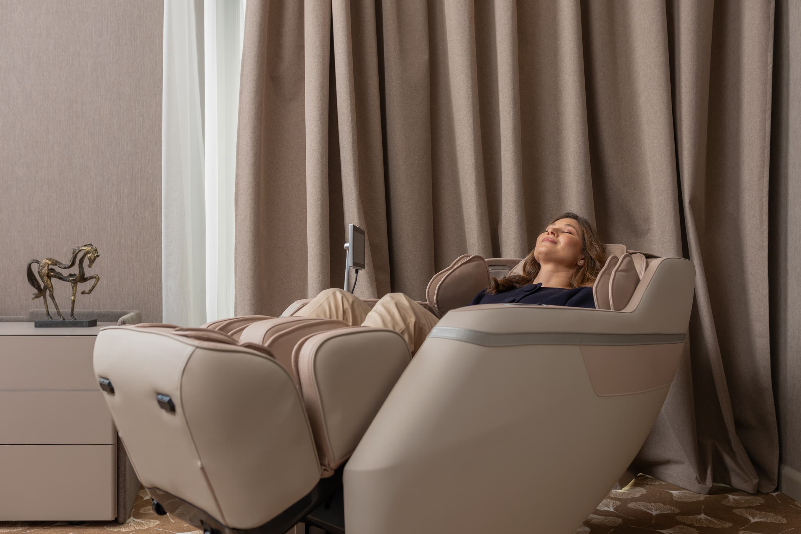 La funzione di pressoterapia della poltrona SUPERIA II DUAL CORE offre un relax profondo, permettendo all'utente di concentrarsi in qualsiasi momento sulla parte superiore del corpo (spalle e braccia), sulla parte inferiore (gambe e piedi), oppure su tutto il corpo per un'esperienza di benessere indimenticabile. La pressione è delicata e ritmica, stimolando la circolazione, liberando la tensione muscolare e trasformando ogni sessione in un momento di puro piacere.